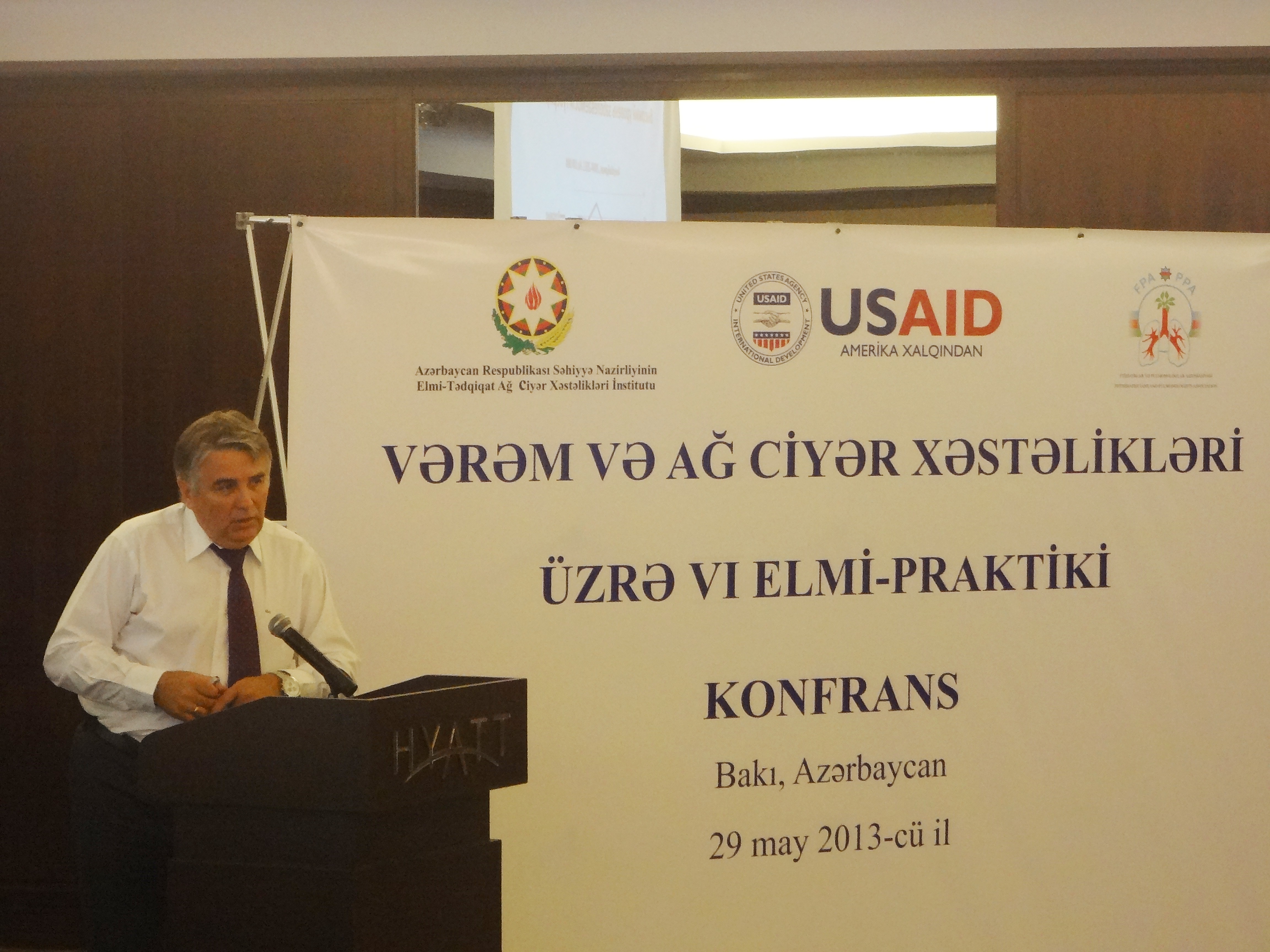 Since the AZ SHIP project will be ending in September 2013, on May 29 USAID in cooperation with the Scientific-Research Institute of Lung Diseases and the Public Union of Pulmonologists and TB Specialists, held a conference dedicated to tuberculosis and lung diseases. The conference brought together more than 100 specialists in lung diseases from all regions of the country. The speakers presented main developments in clinical practice and evidence-based approaches to TB and lung disease treatment and prevention and discussed the challenges in the implementation of the Azerbaijan National TB Strategy. The conference also provided an opportunity for AZ SHIP to report on achievements in TB since 2009 when USAID initiated its TB activities in Azerbaijan, and to discuss the hand-over of AZ SHIP TB activities to the NTP. Participants and speakers at the conference included the Ministry of Health, Penitentiary Service of the Ministry of Justice, the Public Health and Reforms Center, the Global Fund, the Country Coordinating Mechanism, and the Ministry of Health of the Nakhchivan Autonomous Republic.