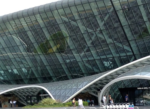 The author reminds that designed by Turkish architecture studio Autoban, the Heydar Aliyev International Airport in Baku, Azerbaijan, boasts concave external glass walls, cocoon houses, cafes, bars, stores and amenities.